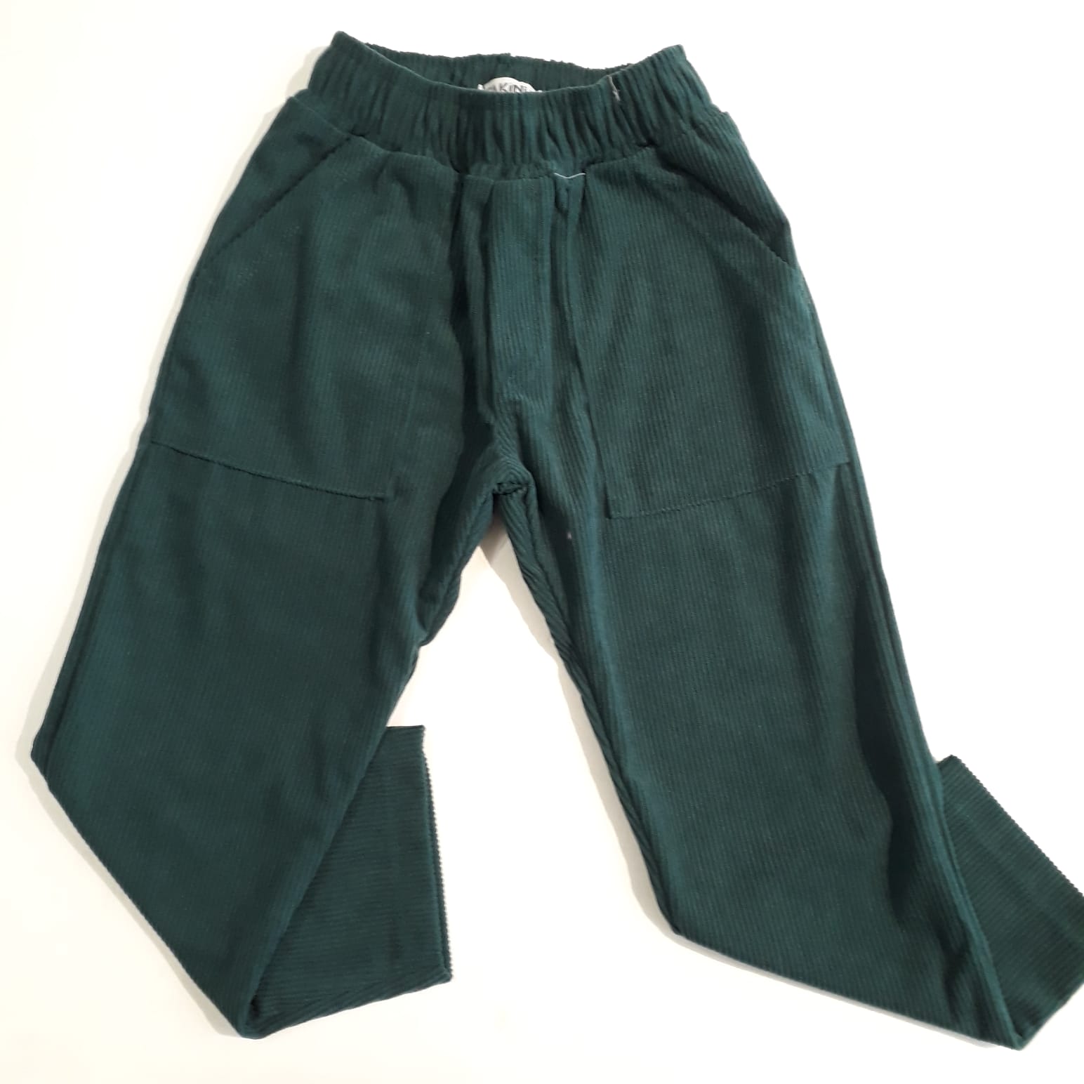 Calça de veludo alto relevo e bolsos frontais