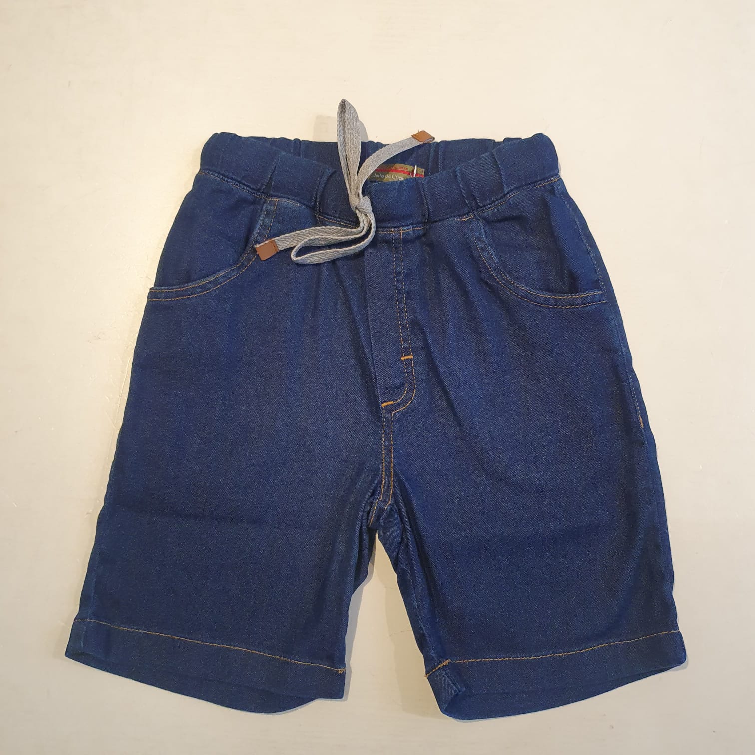 Bermuda em Malha Imita Jeans com Bolsos Frontais