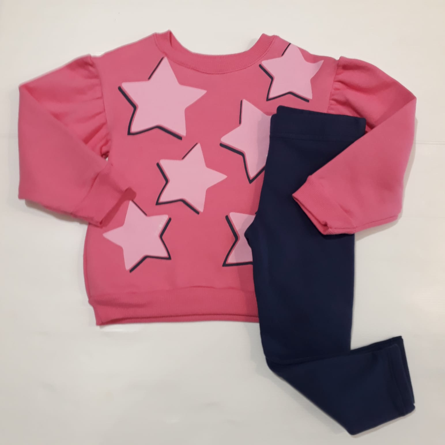 Conjunto Blusão Moletom Estrelas e Legging em Molecotton