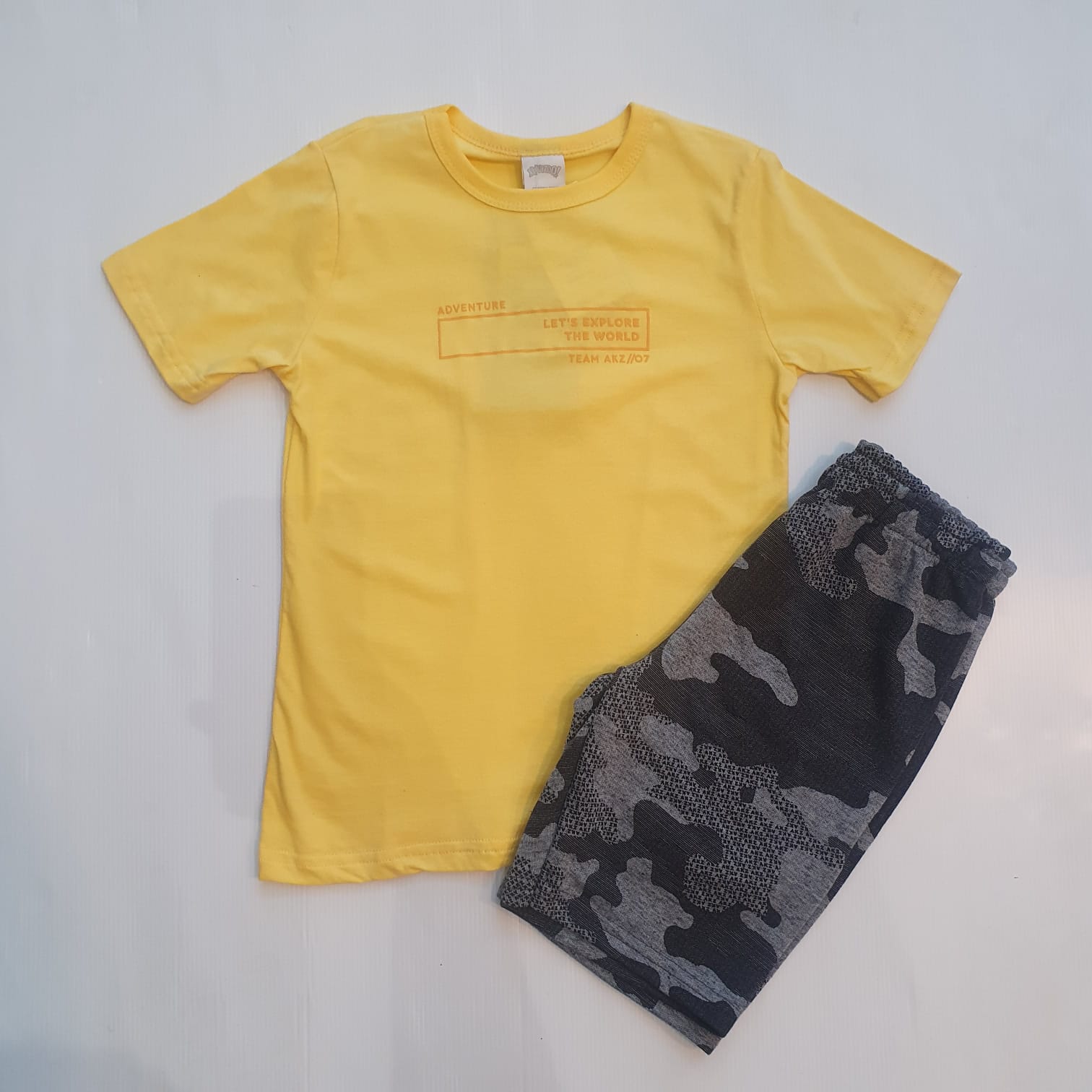 Conjunto Camiseta em Malha e Bermuda Moletinho Camuflada