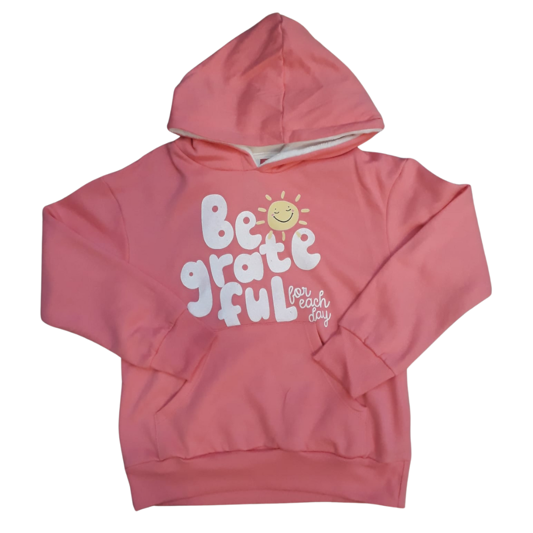 Moletom Rosa “Be grateful” com Capuz Forrado em Fleece