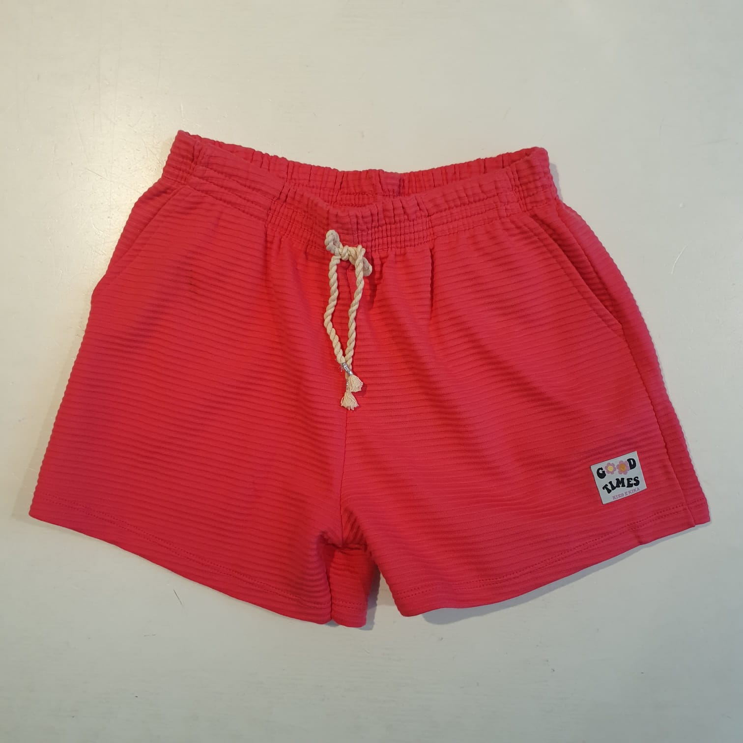 Short Pink em Malha Texturizada com Bolsos Frontais