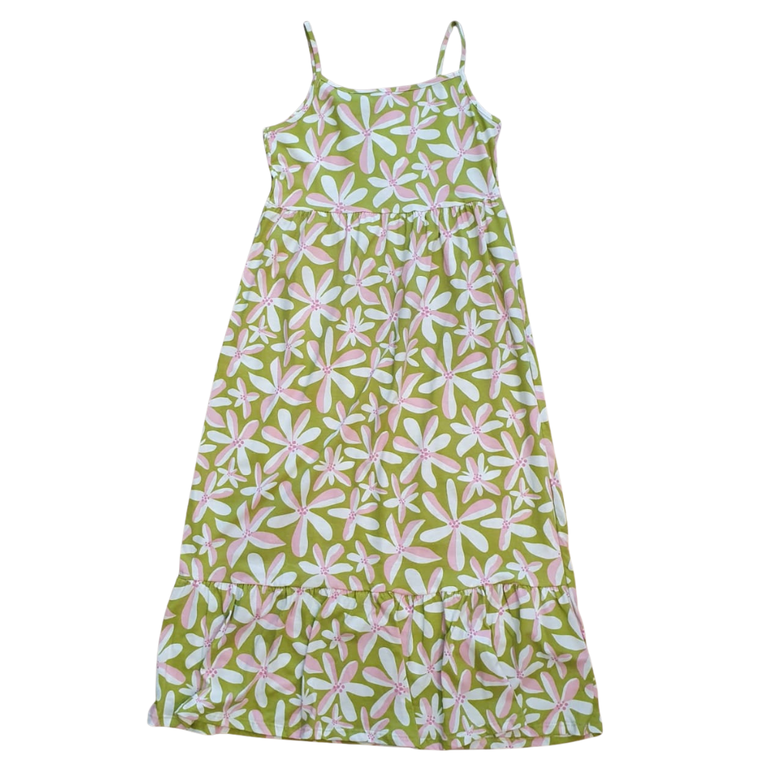 Vestido Alcinha Verde Longo com Estampa Flores